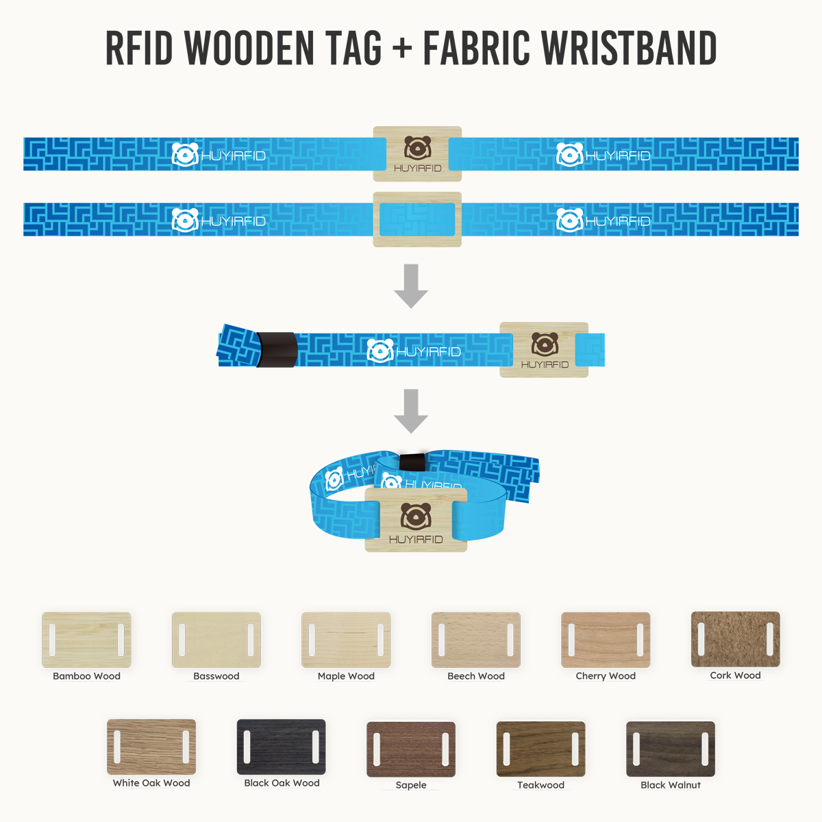 Dual-Function fabric wristband with RFID wooden card – Custom & personalized for event management is a versatile tech accessory that combines two key functionalities: brand personalization and smart access control. The wristband features a soft, customizable fabric strap printable with logos, event names, or colors, while the attached wooden card embedded with RFID technology enables dual-purpose use—contactless access control for secure area entry and data tracking for attendance management. Crafted to enhance event efficiency, this wristband offers a unique blend of custom branding, practical smart features, and durable design, making it essential for conferences, festivals, and corporate events requiring streamlined management solutions.